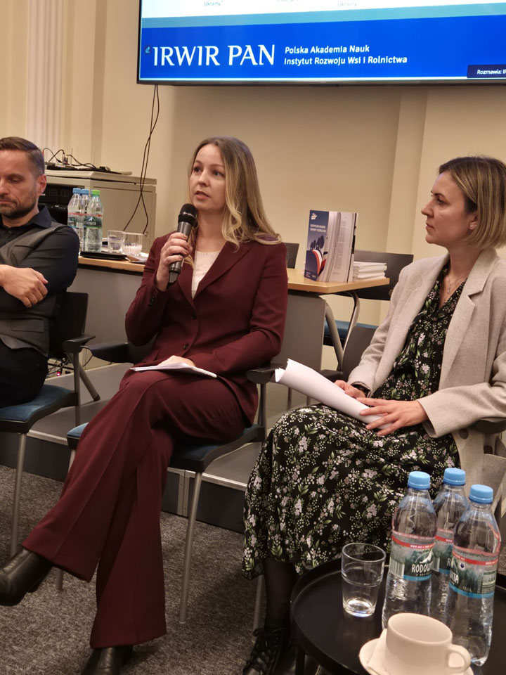 | 01.12.2025, Варшава (Польща). Співпраця ДУ «Інститут регіональних досліджень імені М. І. Долішнього НАН України» та Інституту розвитку села і сільського господарства Польської академії наук (IRWiR PAN) 1 грудня 2025 року в межах співпраці ДУ «Інститут регіональних досліджень імені М. І. Долішнього НАН України» та Інституту розвитку села і сільського господарства Польської академії наук (IRWiR PAN) в.о. завідувача відділу проблем соціально-гуманітарного розвитку регіонів, д.е.н., с.д. Ольга МУЛЬСКА та старший науковий співробітник, д.е.н. Ольга ЛЕВИЦЬКА взяли участь у науковому семінарі «Українська сільська місцевість на шляху до Європейського Союзу: від даних до політичних рекомендацій». Захід відбувся у Палаці Сташиця у м. Варшаві. Під час семінару обговорено ключові виклики, з якими стикається українське село в умовах війни та підготовки до вступу до ЄС, зокрема питання продовольчої безпеки, земельних відносин, регіональних диспропорцій, доступності публічних послуг і сучасних демографічних тенденцій. У пленарному засіданні д-р Ольга МУЛЬСКА представила доповідь щодо регіональних особливостей України в контексті соціально-економічної вразливості та стійкості територій, приділивши особливу увагу проблематиці міграційної безпеки регіонів. Серед доповідачів також були завідувач відділу економіки і політики аграрних перетворень ДУ «Інститут економіки та прогнозування НАН України» академік НАН України Олена Бородіна, провідний науковий співробітник Інституту демографії та досліджень якості життя імені М. В. Птухи НАН України Ірина Майданік та інші учасники. У межах модерованої експертної дискусії д-р Ольга ЛЕВИЦЬКА окреслила актуальні проблеми економічного розвитку України та державної регіональної політики в умовах нестабільності, детально розкрила механізми зміцнення стійкості економіки регіонів і громад, зокрема сільських у процесі європейської інтеграції. Підкреслила потенційну роль Польщі як «мосту» у вибудовуванні відносин України з Європейським Союзом. Науковці О. Мульска та О. Левицька також взяли участь в іншому науковому семінарі IRWiR PAN на тему «Відновлення села як парадигма трансформації сільської місцевості Польщі». Керівництво ДУ «Інститут регіональних досліджень імені М. І. Долішнього НАН України» разом із учасницями висловлюють щиру вдячність директору IRWiR PAN, професору Моніці Станни, а також науковим співробітникам IRWiR PAN Віталію Крупіну та Юлії Цибульській за запрошення та організацію наукового заходу. Сподіваємось на плідну майбутню співпрацю! Фото з події:
