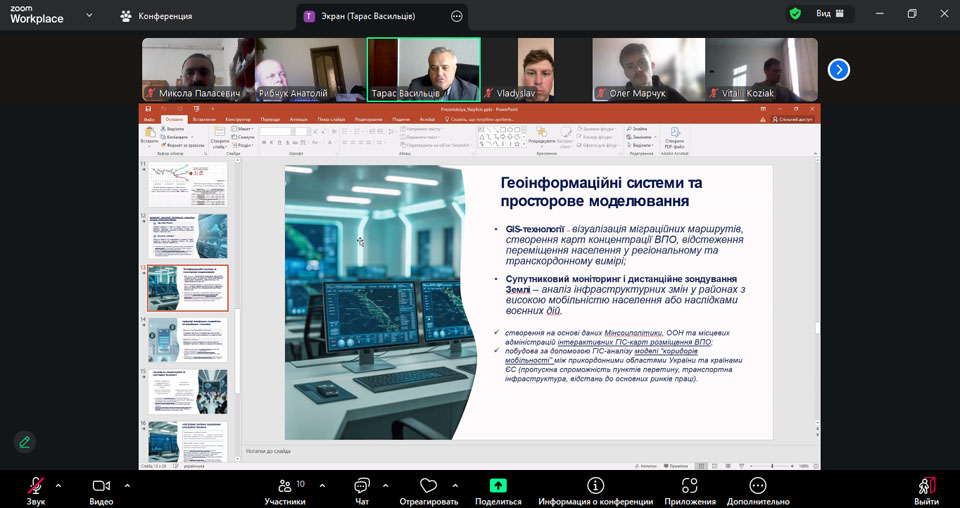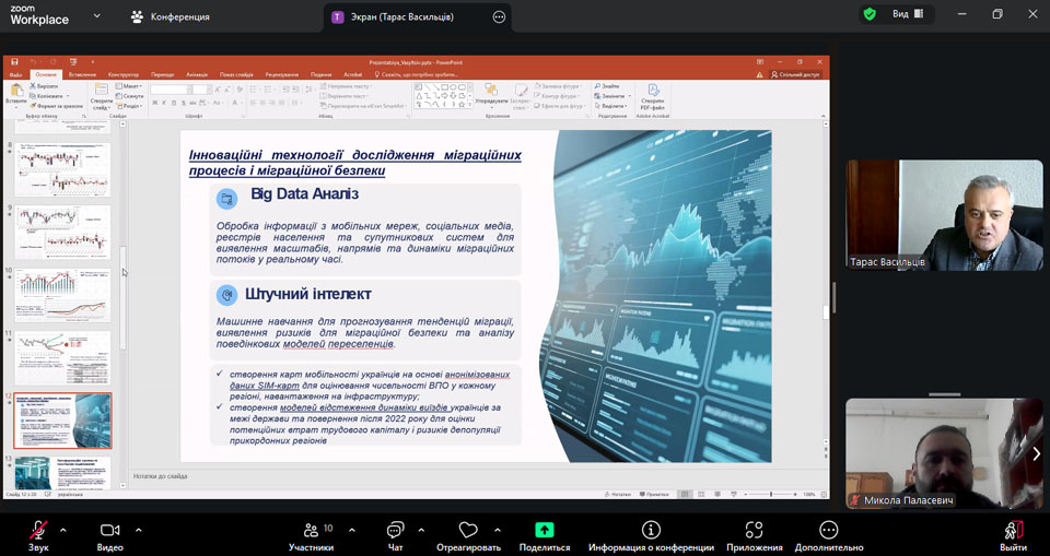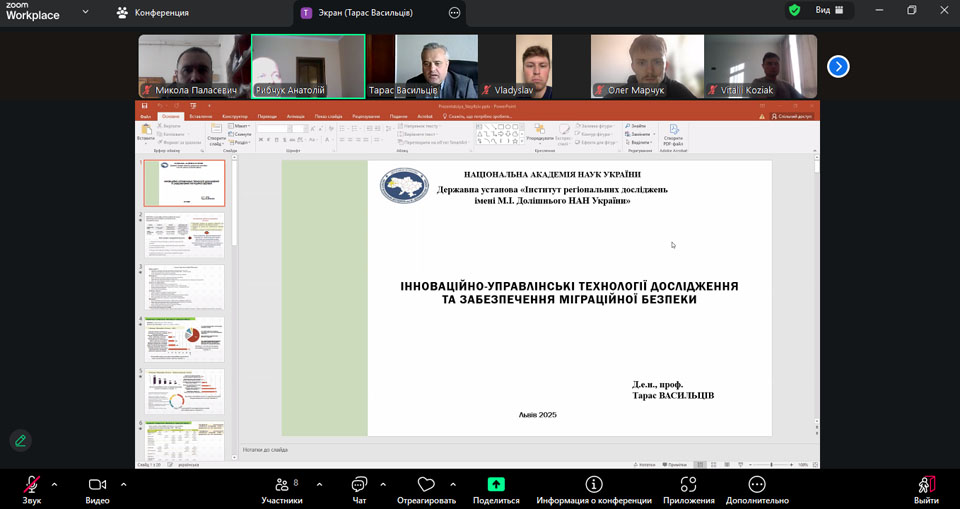 | 16-17.10.2025, Інститут просторового планування та перспективних технологій Національного університету «Львівська політехніка» (м. Львів). VІІ Міжнародна науково-практична конференція «Інноваційні технології у розвитку сучасного суспільства» 16-17 жовтня 2025 р. відбулась VІІ Міжнародна науково-практична конференція «Інноваційні технології у розвитку сучасного суспільства», організована Інститутом просторового планування та перспективних технологій Національного університету «Львівська політехніка». У роботі конференції взяли участь директор Державної установи «Інститут регіональних досліджень імені М. І. Долішнього НАН України» доктор економічних наук, професор Тарас ВАСИЛЬЦІВ, який виступив на пленарному засіданні із доповіддю «Інноваційні-управлінські технології дослідження та забезпечення міграційної безпеки». А також у конференції взяли участь наукові працівники Інституту: доктор економічних наук, професор Світлана ШУЛЬЦ та доктор економічних наук, професор Галина ВОЗНЯК. Фото з події: Програма конференції тут.