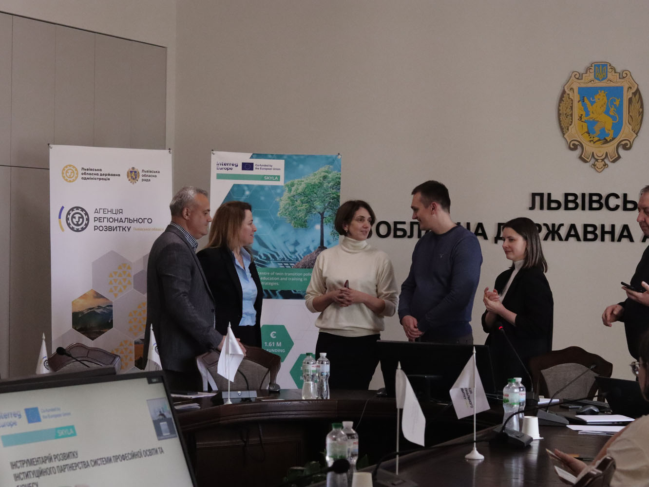 | 17.12.2025, Львівська обласна військова (державна) адміністрація. Експертна участь науковців ДУ «Інститут регіональних досліджень ім. М. І. Долішнього НАН України» у реалізації проєкту SKYLA щодо smart-спеціалізації та навичок подвійного переходу у Львівській області 17 грудня 2025 року директор Інституту, д.е.н., професор Тарас Васильців та в.о. завідувача відділу проблем соціально-гуманітарного розвитку регіонів, д.е.н., с.д. Ольга Мульска взяли участь у заході «Smart-спеціалізація та навички подвійного переходу у Львівській області», що відбувся у межах проєкту SKYLA (Interreg Europe) та співпраці з Агенцією регіонального розвитку Львівської області. Науковці Інституту презентували результати дослідження «Інструментарій розвитку інституційного партнерства системи професійної освіти та бізнесу». Зокрема, представили результати пілотного експертного опитування суб’єктів господарювання Львівської області щодо поточного стану інституційної взаємодії закладів професійної освіти, бізнесу та органів влади, а також можливих форм співпраці між ними. Окрему увагу приділено питанням адаптації освітніх програм ЗПО до вимог регіонального ринку праці, стану та тенденціям працевлаштування випускників, ключовим бар’єрам розвитку дуальної освіти, а також готовності бізнесу долучатися до популяризації професійної освіти в регіоні. Аспектом обговорення стали механізми подолання бар’єрів розвитку інституційної співпраці між бізнесом і системою професійної освіти, а також стратегічні напрями формування та зміцнення такого партнерства у Львівській області. У заході також взяли участь представники органів влади, кластерних об’єднань і громадських організацій, які поділилися практичним досвідом реалізації інституційного партнерства між бізнесом і закладами професійної освіти в регіоні, а також окреслили поточні й перспективні потреби ринку праці. Фото з події: