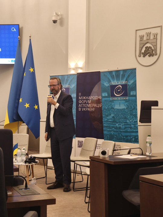 | 24.10.2025, Lviv (Ukraine). II International Forum of Agglomerations of Ukraine "Agglomerations and Functional Territories: European Approaches and Their Implementation in Ukraine" On October 24, 2025, the II International Forum of Agglomerations of Ukraine “Agglomerations and Functional Territories: European Approaches and Their Implementation in Ukraine” was held, organized by the Lviv City Council, the Lviv Agglomeration Association with the assistance and support of the Council of Europe. The Forum was attended by: Director of the Dolishniy Institute of Regional Research of the National Academy of Sciences of Ukraine Dr.Sci. of Economics, Professor Taras Vasyltsiv, as well as researchers of the Institute: Dr.Sci. of Economics, Professor Maryana Melnyk, Dr.Sci. of Economics, Professor Halyna Voznyak, Dr.Sci. of Economics, Associate Professor Viktor Borshchevskyy, Ph.D. of Economics, Senior Researcher Solomiya Tkach, Ph.D. of Economics, Senior Researcher Iryna Leshchukh. Key issues of the development of Ukrainian agglomerations and functional territories were discussed in the context of European approaches and standards of the Council of Europe, international experience (France, Sweden, Spain, Latvia, the Netherlands), as well as models of metropolitan planning in the United States. The focus was on the formation of effective governance in urban agglomerations, the role of functional territories as growth poles, and the potential of agglomerations in the process of post-war reconstruction. Particularly relevant for our Institute was the discussion of issues that directly resonate with the current research of the Department of Spatial Development, which is working on the topic: "Institutional instruments for the development of agglomerations in conditions of war and post-war recovery of Ukraine (on the example of the Carpathian region)". The forum once again confirmed that the development of agglomerations is not only a matter of spatial planning, but also an important factor in the competitiveness, cohesion, and European future of our state. The Forum program at the link. Photos from the event: