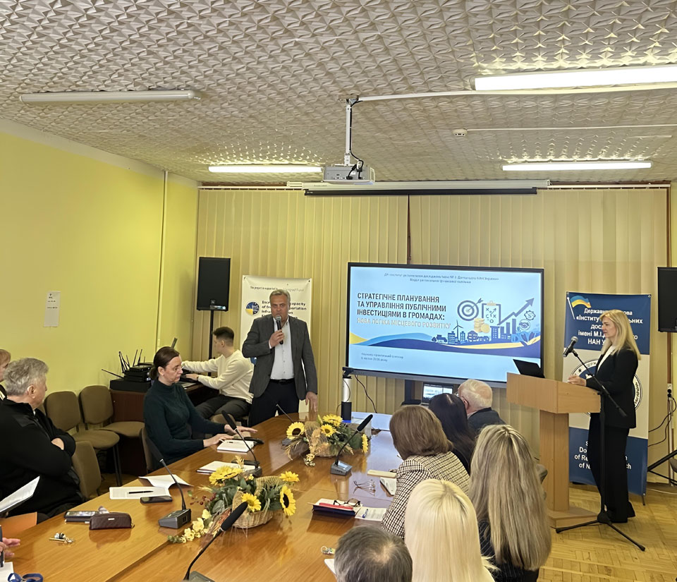 | 06.04.2026, ДУ «Інститут регіональних досліджень ім. М. І. Долішнього НАН України» започаткував експертний майданчик з обговорення проблематики регіонального розвитку. Стартували з обговорення стратегічного планування та управління публічними інвестиціями! 6 квітня 2026 року у ДУ «Інститут регіональних досліджень ім. М. І. Долішнього НАН України» відбувся науково-практичний семінар на тему «Стратегічне планування та управління публічними інвестиціями в громадах: нова логіка місцевого розвитку», який започаткував цикл постійних періодичних семінарів (експертних дискусій) у сфері регіональної політики та розвитку. Ключову доповідь оголосила завідувач відділу регіональної фінансової політики, д.е.н., професор Ірина СТОРОНЯНСЬКА. Запрошені експерти, представники влади, науковці та фахівці Інституту обговорювали питання: - неузгодженості нормативно-правових документів, що регулюють процеси стратегічного планування розвитку регіонів і громад, залучення публічних інвестицій в Україні;