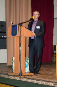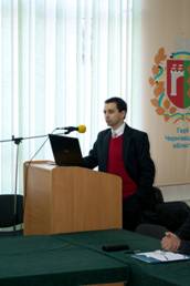 Д.е.н., с.н.с. ДУ “Інститут економіки природокористування та сталого розвитку НАН України” Я.В. Остафійчук представив аудиторії доповідь “Соціоекологічні проблеми розвитку сільських територій: сучасний вимір та перспективи вирішення”. Свою доповідь він розпочав із результатів дослідження ВООЗ, згідно яких здоров'я людей на 20% залежить від стану навколишнього середовища, забруднення якого призводить до росту захворюваності та передчасної смертності. Щоб запобігти потенційному забрудненню повітря та води, доповідач пропонує використати європейський досвід у сфері міжбюджетних та податкових відносин.
