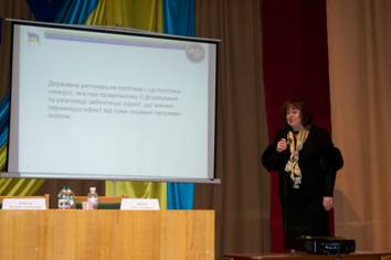 «Державна регіональна політика – це політика синергії, яка при правильному її формуванні та реалізації забезпечує ефект, що значно перевищує ефект від суми окремих галузевих політик» зазначила у вступній доповіді «Децентралізація влади в контексті становлення сучасної регіональної політики» директор Інституту демографії та соціальних досліджень імені М.В.Птухи НАН України, академік НАН України Е.М. Лібанова. Особливий наголос доповідачем був зроблений на необхідності визначення обмеженої кількості пріоритетів державної регіональної політики в умовах обмежених фінансових ресурсів. Було відзначено важливість проведення першочергових реформ – адміністративної, територіальної, бюджетної, державної служби тощо – для створення фундаменту ефективного ендогенного розвитку територій.