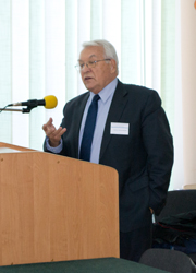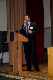 Доповідь д.е.н., проф. М.П. Бутка, завідувача кафедри Чернігівського національного технологічного університету, стосувалась модернізаційних аспектів управління інноваційним розвитком бізнес-середовища регіону. Вчений висловив свої міркування про ситуацію в Україні, стратегічні орієнтири її розвитку та обґрунтовував потребу першочергового формування сприятливих умов для бізнесу. Була запропонована схема розробки комплексної інноваційної програми розвитку регіону та його бізнес-середовища, охарактеризовані постулати, на яких має базуватись система управління регіональним розвитком.