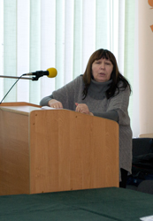 Д.е.н., проф. Л.С. Гринів, завідувач кафедри Львівського національного університету імені Івана Франка, у своїй доповіді торкнулась аспектів фізико-економічної методології дослідження просторового розвитку економіки. Вченою було розкрито сутність природного капіталу ландшафтної системи та запропоновано методичні підходи до фізико-економічного моделювання його споживання і заощадження.