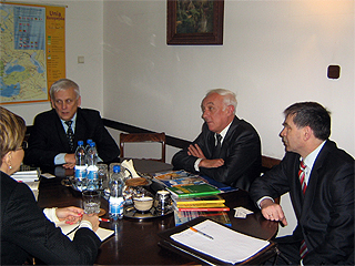 Першою польською академічною установою, яку відвідала делегація Інституту, був Інститут географії та просторового загосподарювання ПАН. Цей Інституту, заснований у 1953р., є провідним центром досліджень у сфері фізичної та суспільно-економічної географії, картографії, просторового загосподарювання, регіонального та місцевого розвитку. Сильною стороною Інституту є міжнародне співробітництво, в останні роки його працівники взяли участь в понад 50 міжнародних програмах і проектах. У робочій зустрічі з польської сторони взяли участь директор Інституту географії та просторового загосподарювання ПАН, професор, др.габ. Марек Дегурскі та заступник директора Інституту, професор, др.габ. Томаш Коморніцкі, а з української сторони - Надзвичайний та Повноважний Посол України у Республіці Польща д.е.н., професор М.З. Мальський, директор Інституту регіональних досліджень НАН України д.е.н., професор В.С. Кравців, д.е.н., професор Мальська М.П., вчений секретар Інституту регіональних досліджень НАН України, к.ф.-м.н. В.В. Демченко. Сторони ознайомили одна одну із напрямами та найважливішими результатами досліджень своїх установ, а також обговорили можливості співпраці. Результатом зустрічі стало досягнення домовленостей щодо підготовки і підписання угоди про співробітництво, участі у конференціях, опрацювання конкретних проектних пропозицій, які представляють взаємний інтерес. Зокрема це стосується досліджень метрополійних областей та соціально-економічних аспектів розвитку прикордонних територій.