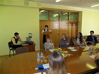 К.е.н., доц. Ольга Гринькевич у своїй доповіді наголосила на можливостях застосування статистичних методів оцінки та аналізу відносно глобалізаційних процесів у вищій освіті. Після виступу постало питання відкритості національного освітнього простору з його наслідками для соціально-економічної ситуації в країні, а також проблемності інформаційного забезпечення наукових досліджень із освітньої проблематики з можливостями міждержавних співставлень.